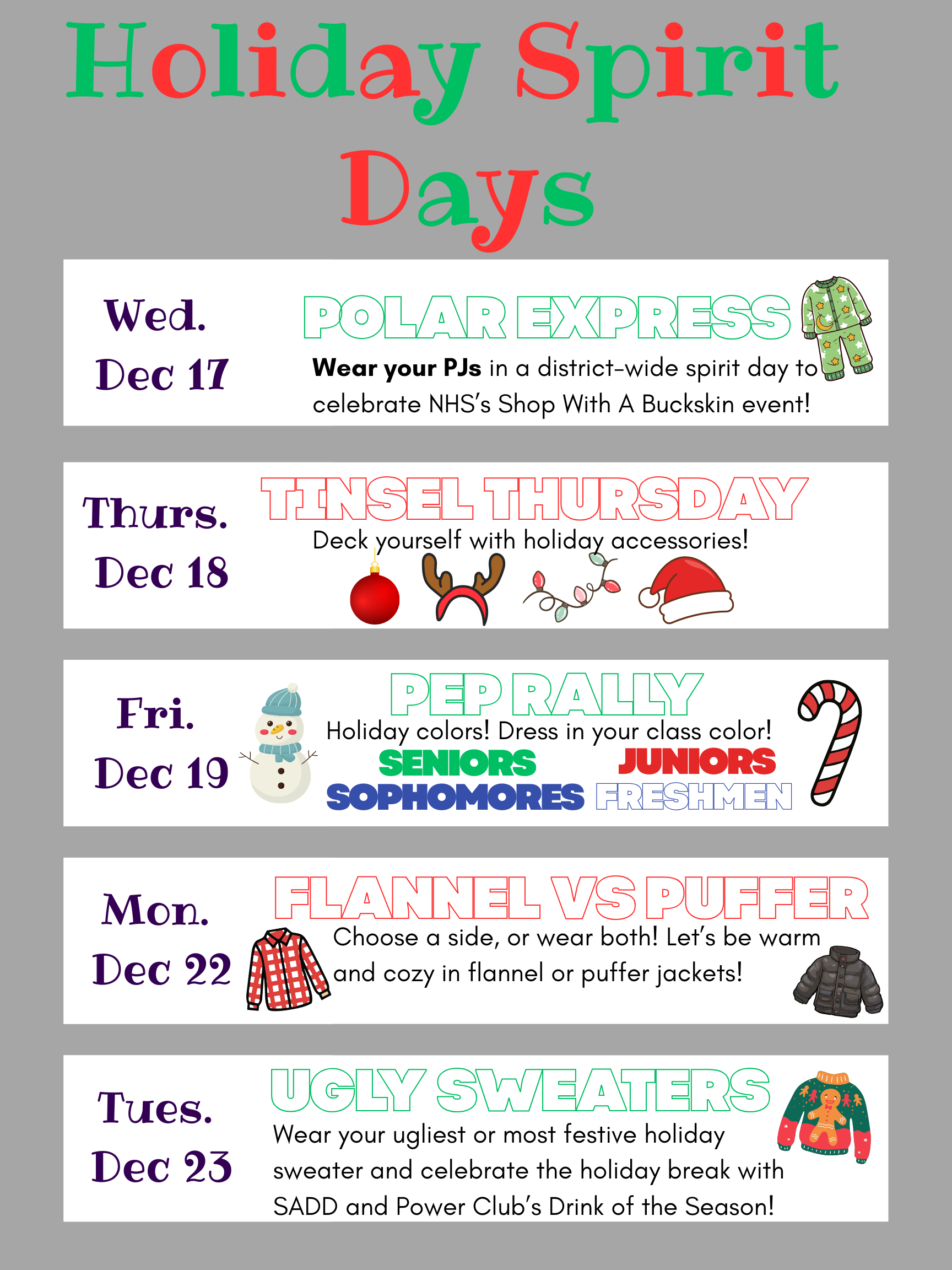 Student Council typically organizes dress down days, a “Puffles the Elf” contest, and a holiday pep rally to get students involved and excited about the upcoming break and activities.