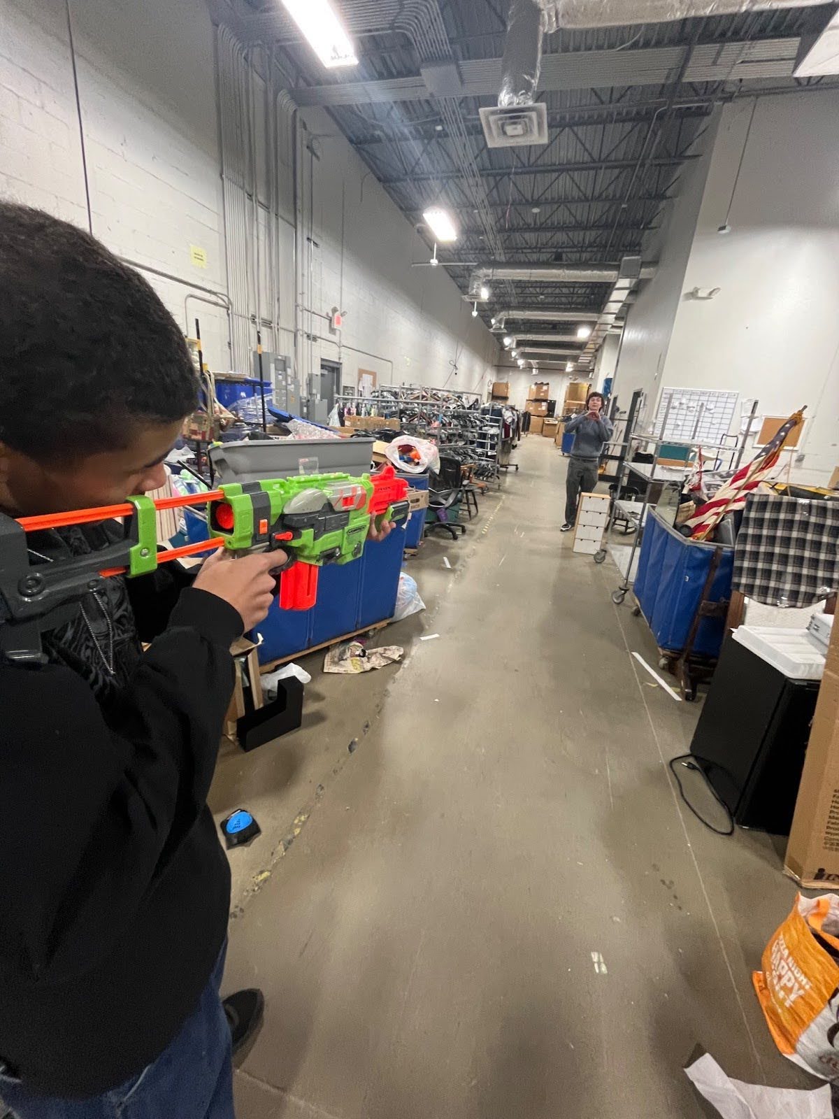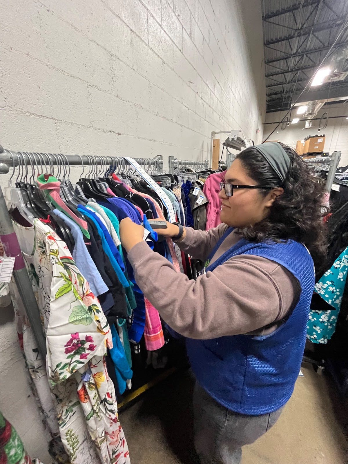 Finding ways to have fun while surrounded by donated clothes and miscellaneous items