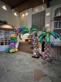 The entrance at the Eden Resort for Prom 2025 featured balloon towers and palm trees.